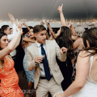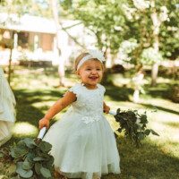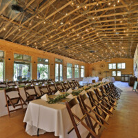 We have designed and built what is without question, the nicest facility in our community with your wedding in mind. The 2800 sq. ft structure features large, opening doors to take advantage of our reliable breezes, spacious window with a garden view, wrap around porches with seating, restrooms and a permanent bar. We also include a professional grade sound system inside the hall and in the outdoor ceremony area that is ready for either your DJ, or your digital music player and playlist to plug and play. A wireless microphone is also available for toasts and announcements. Included are 35 large rectangular banquet tables, smaller buffet tables, up to 100 fruitwood toned, wooden folding chairs with tan padded seats. Seating may be moved for ceremony and or garden seating. Bistro lights and strung LED emitters set a soft glow both within the hall and garden areas.