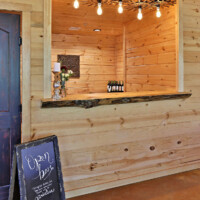 While tiny, with an open floor plan, the She Shack provides plenty of room for the bridal party to get dressed and prepare for the festivities. In keeping with the theme, there is a tiny kitchen and a tiny restroom, featuring the worlds tiniest porcelain sink. To call it charming is an understatement. Large mirrors and dress hooks help ease your wedding day preparations.