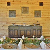 The “She Shack”, a 1940’s tiny house built of rail road ties affords the wedding party a comfortable area to change and prepare for the grand entrance.