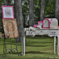 While tiny, with an open floor plan, the She Shack provides plenty of room for the bridal party to get dressed and prepare for the festivities. In keeping with the theme, there is a tiny kitchen and a tiny restroom, featuring the worlds tiniest porcelain sink. To call it charming is an understatement. Large mirrors and dress hooks help ease your wedding day preparations.